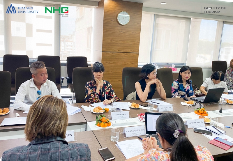 Hình 1: Buổi hội thảo với sự tham gia của Khoa Du lịch Trường Đại học Hoa Sen cùng các bên cơ sở đào tạo và phía doanh nghiệp